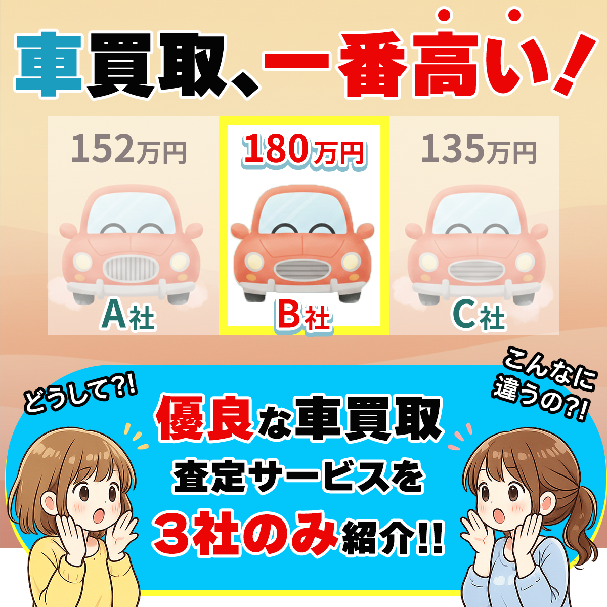 また、優良な車買取サービスも3社のみランキング形式で紹介していますのでぜひ参考にしてみてください。